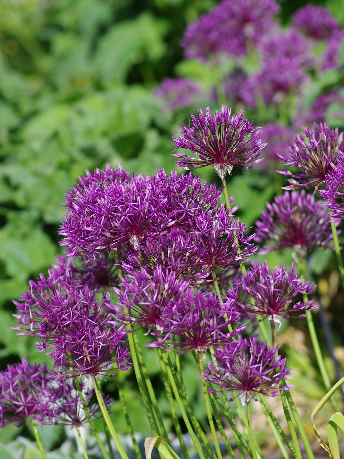 Hybrid between A.'Purple Sensation' and A.cristophii. Bulbous perennial with strap-shaped leaves. Large, rich, deep purple flowers on tall sturdy stems.