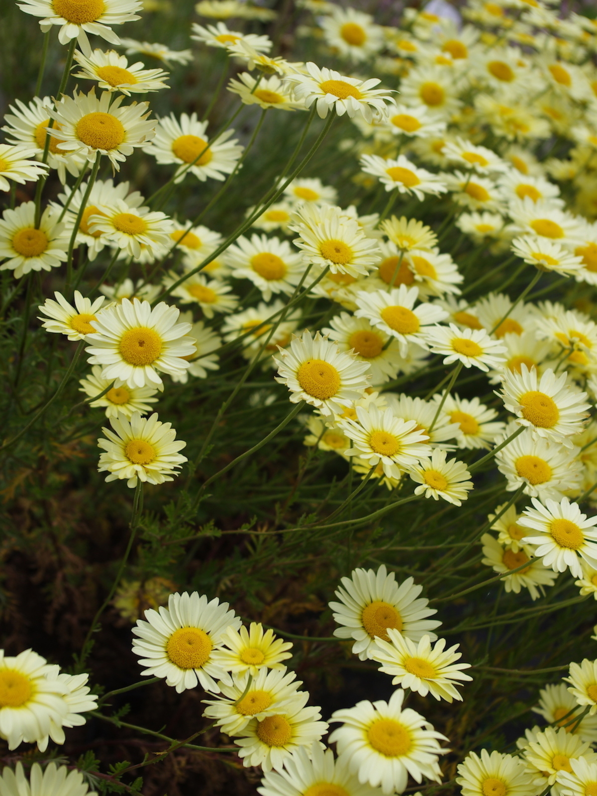 One of Beth's best ten garden plants. Above a low neat mound of ferny, green leaves, thin, stiff stems carry creamy-yellow daisies endlessly throughout summer until the frosts. Invaluable in the garden or picked.