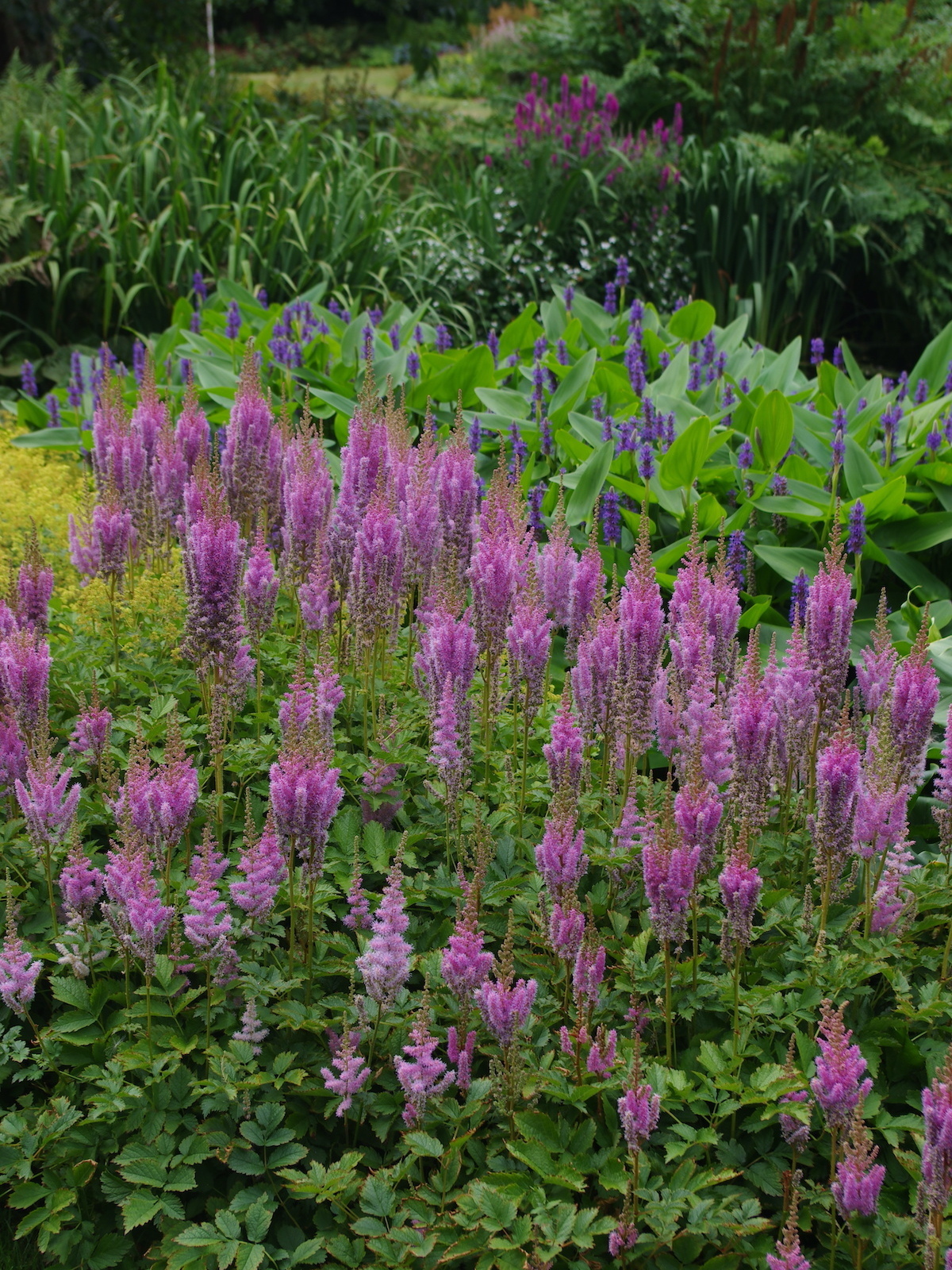 Long established in our Water Garden, growing by one of the ponds, with Alchemilla mollis, this astilbe produces its spikes of vibrant pink flowers over summer, taller than A. chinensis var. pumila, but shorter than A. chinensis 'Superba'.