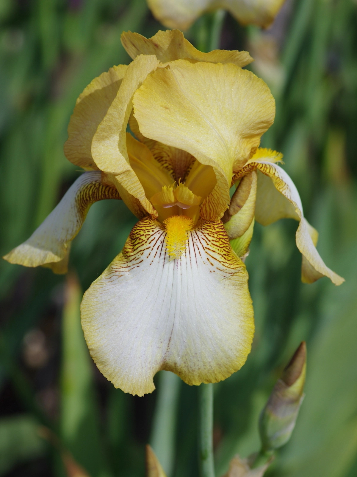 Bred by Beth's late friend, Sir Cedric Morris. Standards are a deep buff yellow. Falls white, margined buff yellow with golden veining and orange beard. Harmful if eaten.