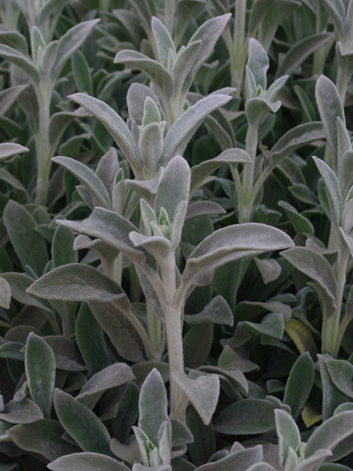 This form produces round, silvery-white velvety bobbles along a stiff tall stem. Dries perfectly, unusual and lovely for dried arrangements. Best remove the flower spikes before they look too untidy. Ideal for edging. Named by Beth as cannot trace another valid name.