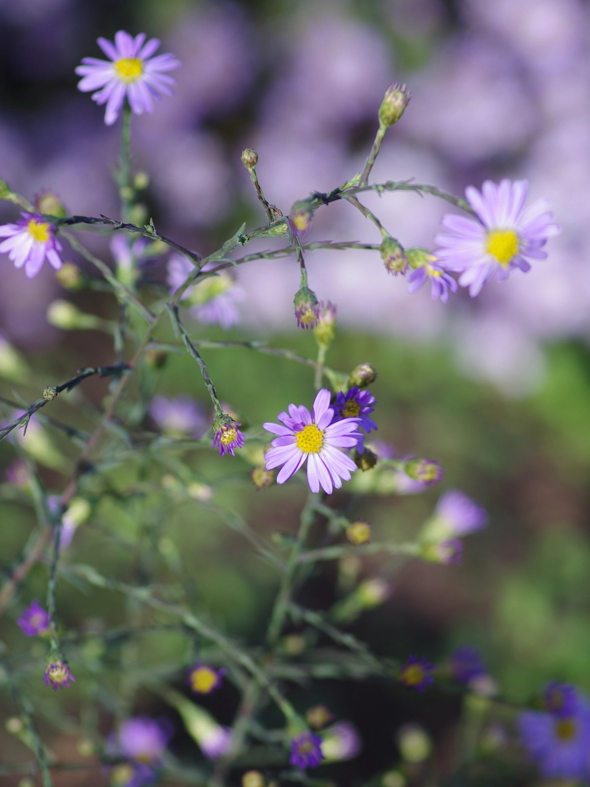 In autumn, masses of mid-sized lavender-blue flowers cover the branches. Foliage has a glaucous hue, especially on drier soils. From Central US states south to Lousiana.