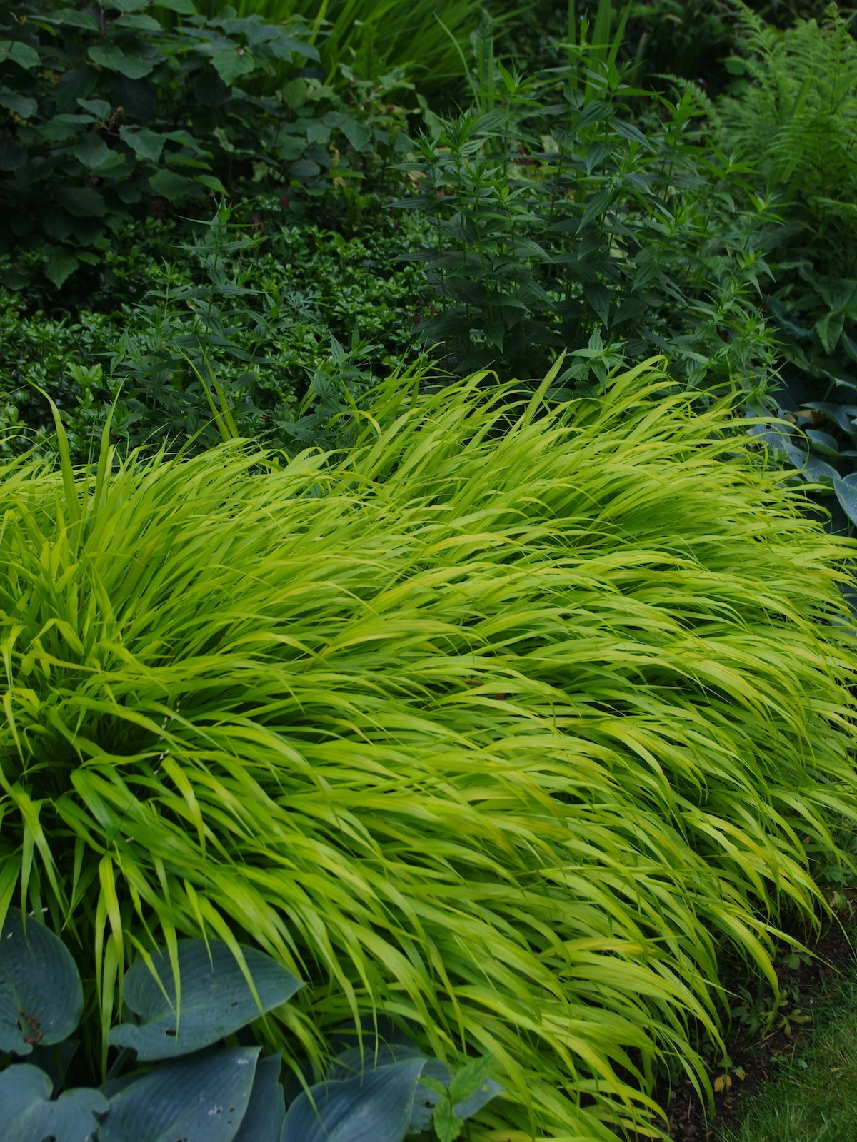 Brunnera, dryopteris, fuchsia, hakonechloa, hosta, lamium.