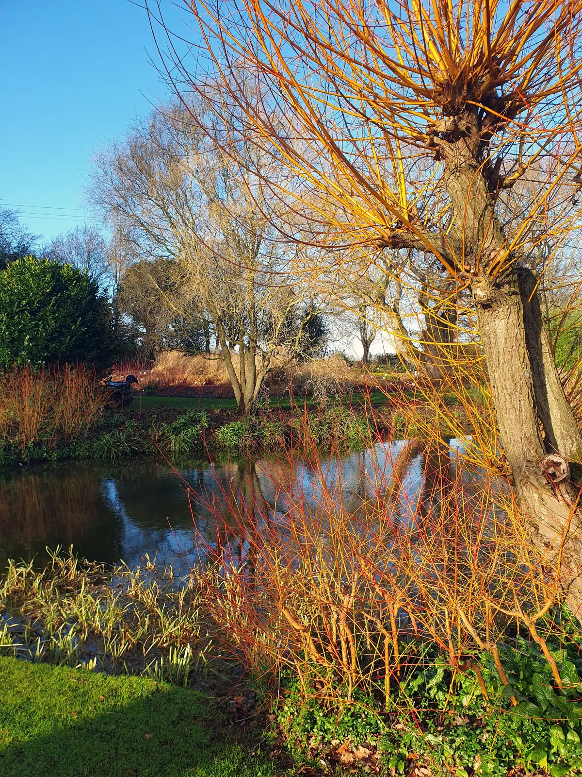 A vigorous medium size tree with bright red-orange young shoots. These are best when when the old shoots are cut back regularly in spring. Long established in our water garden and glows in the low winter sun.