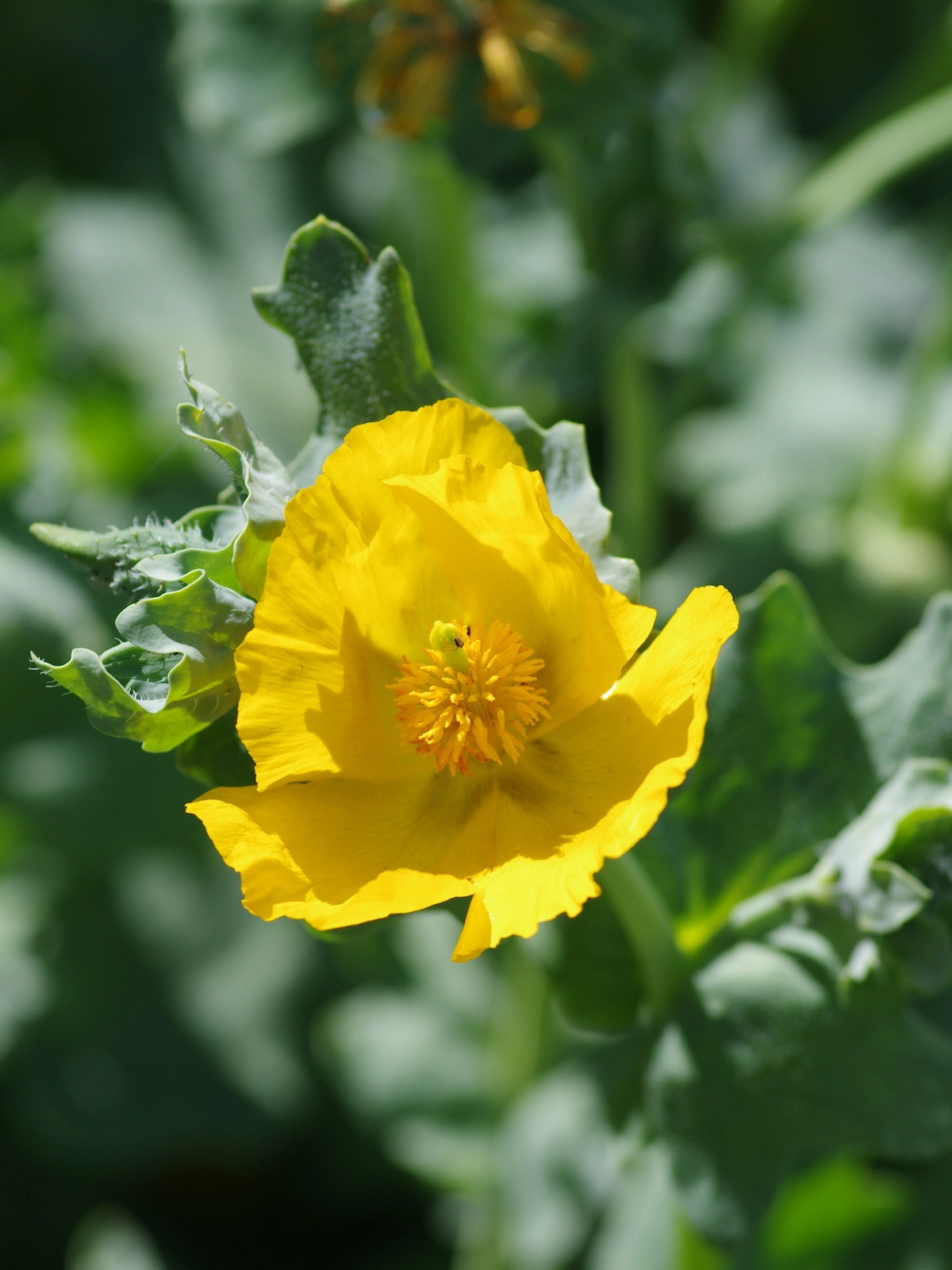 Our native horned poppy, still found on east coast shingly beaches. Handsome rosettes of blue-grey deeply ruffled leaves. Branching heads of curious prickly buds open to show their yellow-orange petals. Followed by long rapier-like curving seed pods.