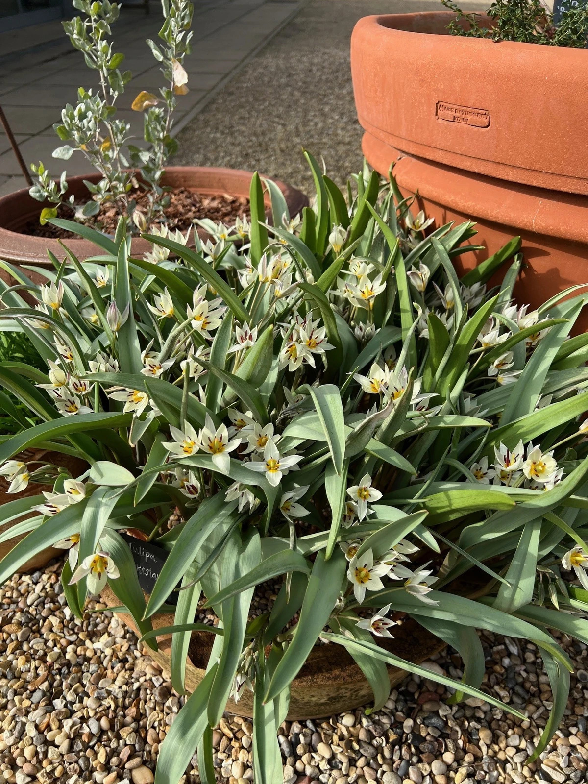 An easy to grow, vigorous tulip, for naturalising in borders, grass or to grow in pots. Wavy-edged grey-green leaves, with starry creamy-white flowers and a deep yellow centre.