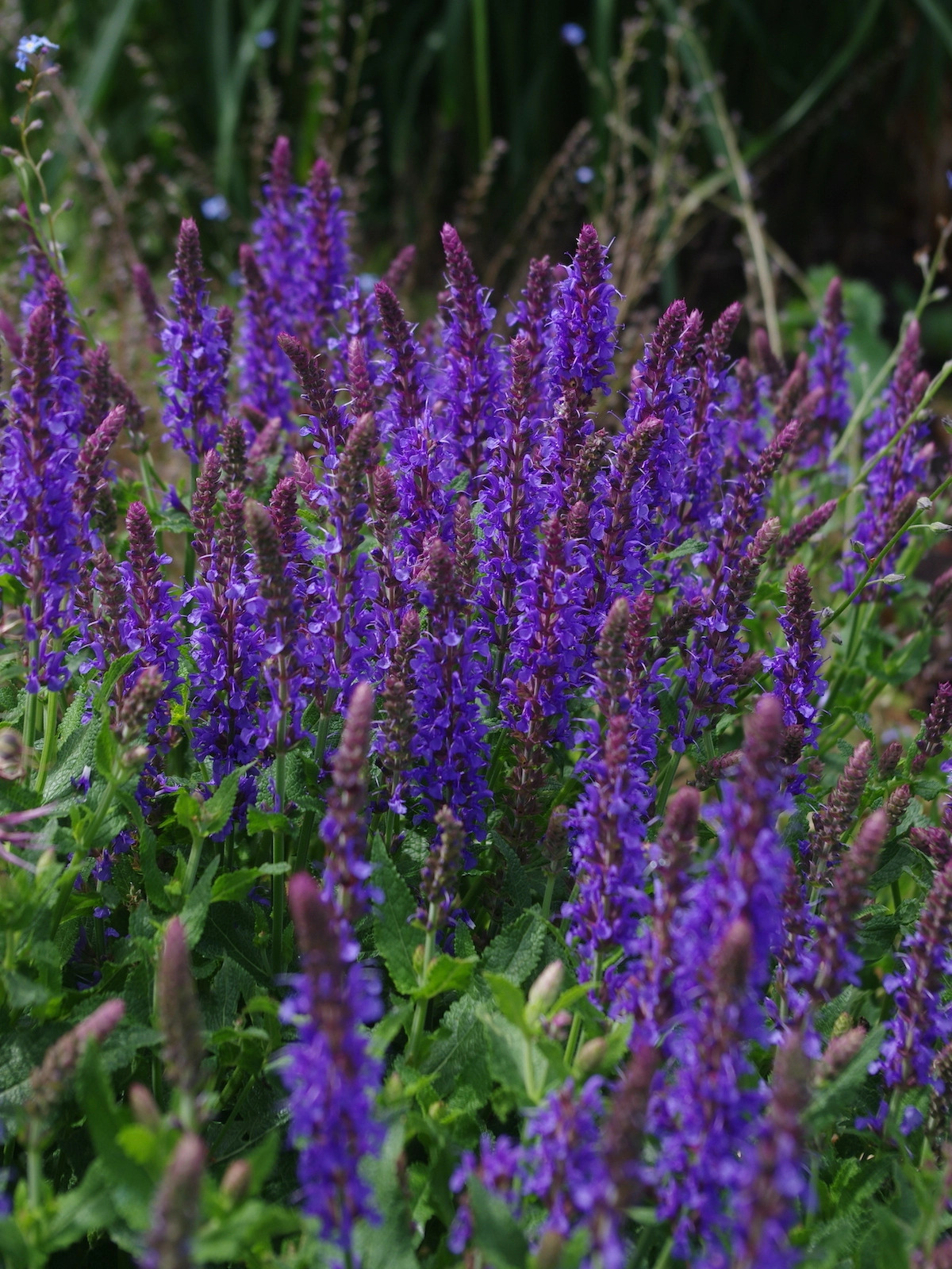 Much admired in late summer and a mainstay of the modern herbaceous border. Clumps of rich green leaves send up stiff spikes of long lasting, intense violet-purple flowers with crimson bracts.