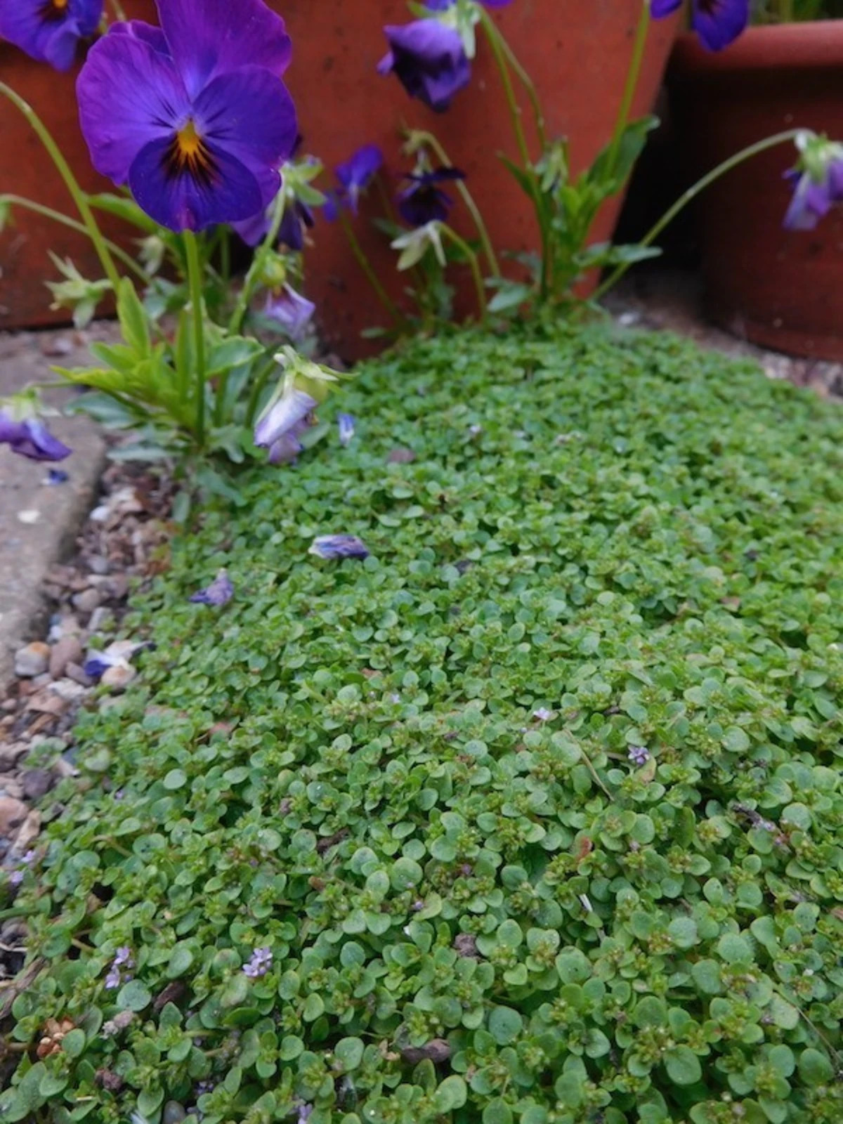 An evergreen ground-hugger, with tiny leaves, packing an intoxicating minty scent. Tiny pink flowers spring to autumn. Great for planting pockets on patio, gaps around stepping stones, or in pots. It tends to find its own location when settled. Able to take some foot traffic if established. Good for salads, drinks etc.