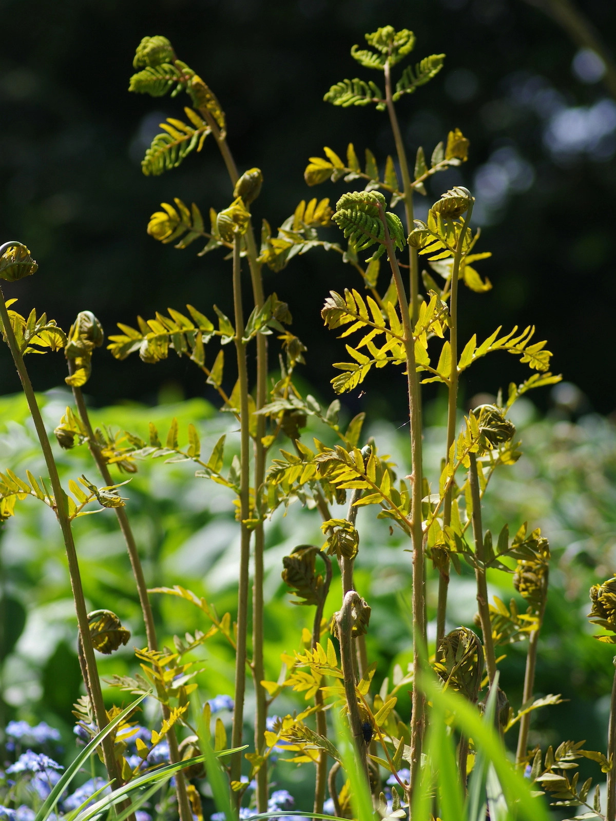 There is nothing quite like it. Unfolding fronds are tinted coppery-brown, becoming green, tall and elegant until autumn when they develop shades of tan and snuff brown. Must have moisture all summer, cool conditions and plenty of humus.
